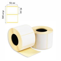 Самоклеящиеся термоэтикетки размером 58×40 мм. Рулон с втулкой диаметром 40 мм содержит 580 (±5 этикеток). Втулка изготовлена из картона или пластика. Рулоны упакованы в удобные компактные гофрокороба по 24 штуки, внутри коробки — в термоусадочную пленку блоками по 6 штук. Самоклеящиеся термоэтикетки применяются для нанесения веса, штрихкодов, цен и другой информации, маркировки товаров недлительного хранения. Используются в торговых весах с термопечатающей головкой или в термопринтерах. Потенциальные потребители — супермаркеты, производство, центры техобслуживания кассовых аппаратов, снабжающие компании, компании по поставке упаковочных материалов, предприятия, занимающиеся фасовкой продукции и т.д.
